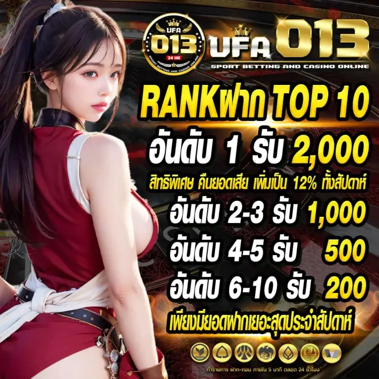 เว็บพนันUFA013 เว็บพนันออนไลน์ที่ดีที่สุด แหล่งรวมเกมคาสิโนออนไลน์บริการครบวงจรอีกหนึ่งแห่งที่ทุกคนรู้จักกันเป็นอย่างดี ไม่ว่าจะเป็นเกมออนไลน์อย่างเกมสล็อต ไพ่บาคาร่า เกมยิ่งปลา หรือ เกมที่ไม่ค่อยฮิตก็มี ตอบโจทย์ทุกการเดิมพัน ตอบโจททุกการลงทุน เปิดให้บริการตลอด 24 ชั่วโมง เล่นได้โดยไม่ต้องเดินทางไปคาสิโนจริง เพียงแค่มีสมาร์ทโฟนก็สามารถสัมผัสบรรยากาศคาสิโนได้แล้ว
